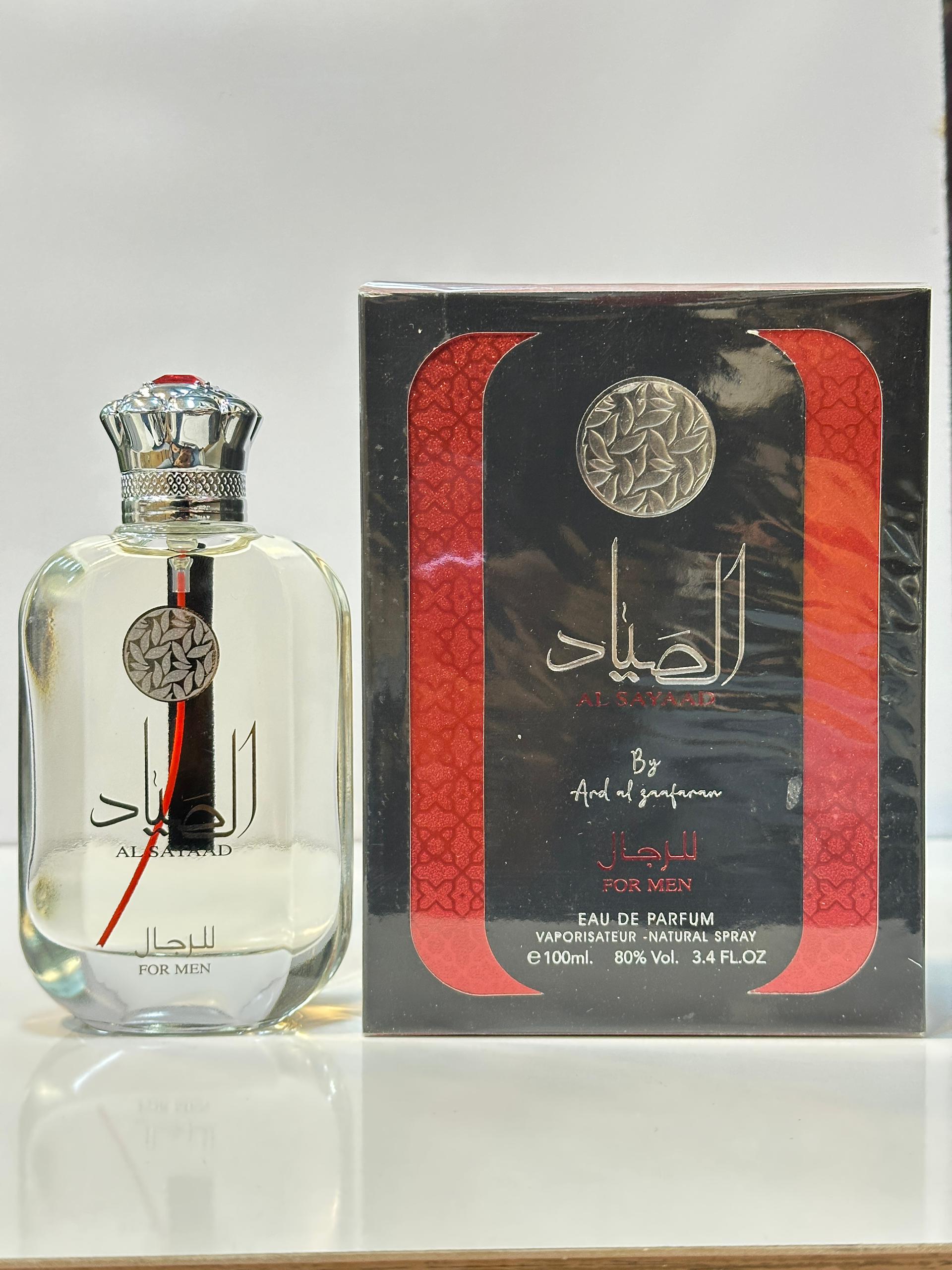 عطر ادوپرفیوم مردانه الصیاد مردانه برند ارض الزعفران حجم ۱۰۰ میل شیرین و خنک